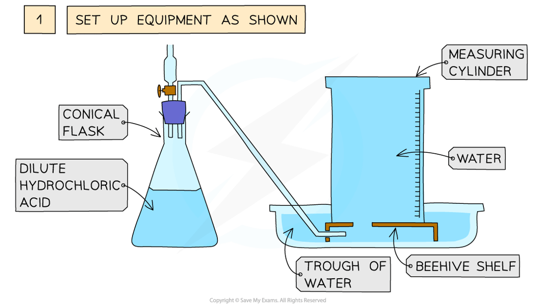Use a delivery tube to connect this flask to a measuring cylinder upside down in water trough